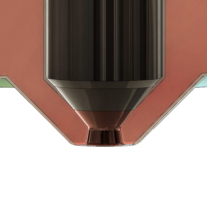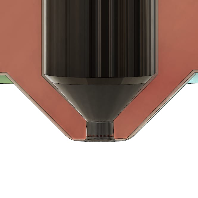 Due to the high thermal performance of the nozzle, printing speed can be pushed even further without sacrificing the quality. The special shape inside the nozzle allowed by the manufacturing technique to improve the flow where the diameter gets reduced, thus allowing a faster flow rate. - Low friction: